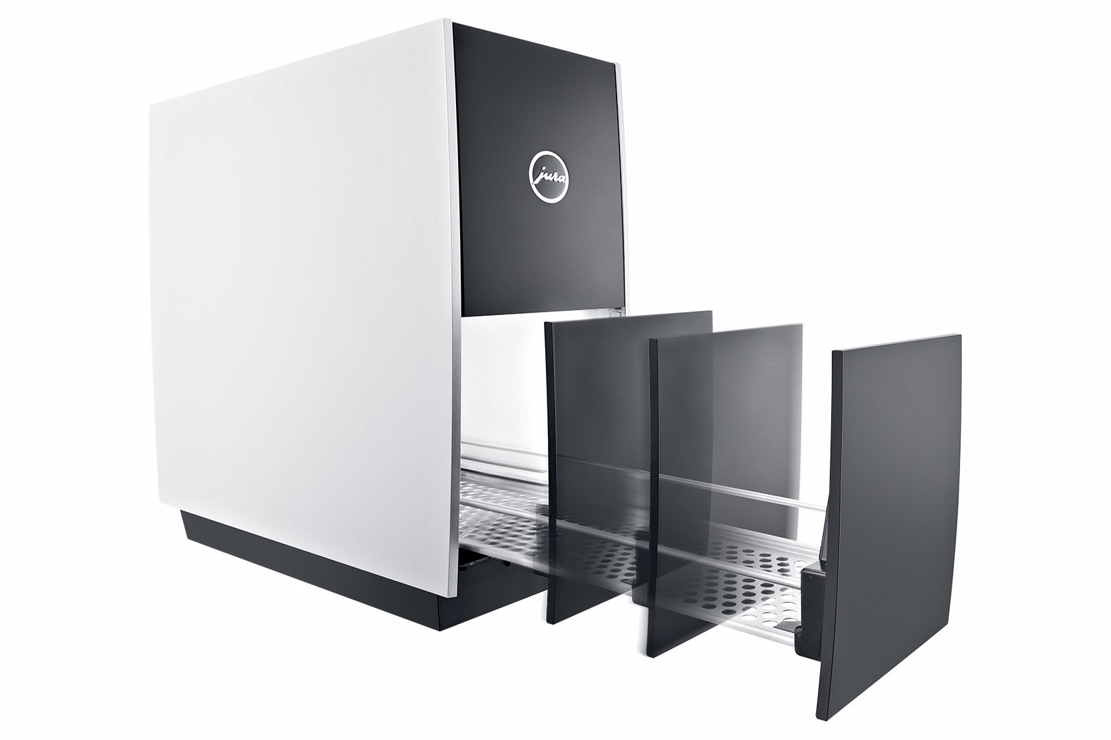 Dvě topná tělesa udržují šálky uvnitř při konstantní teplotě okolo 55 °C – ideální pro přípravu všech káv od ohnivého espressa až po cappuccino korunované mléčnou pěnou. Ohřívač šálků má také pasivně vyhřívaný hliníkový zásobník na své horní části.