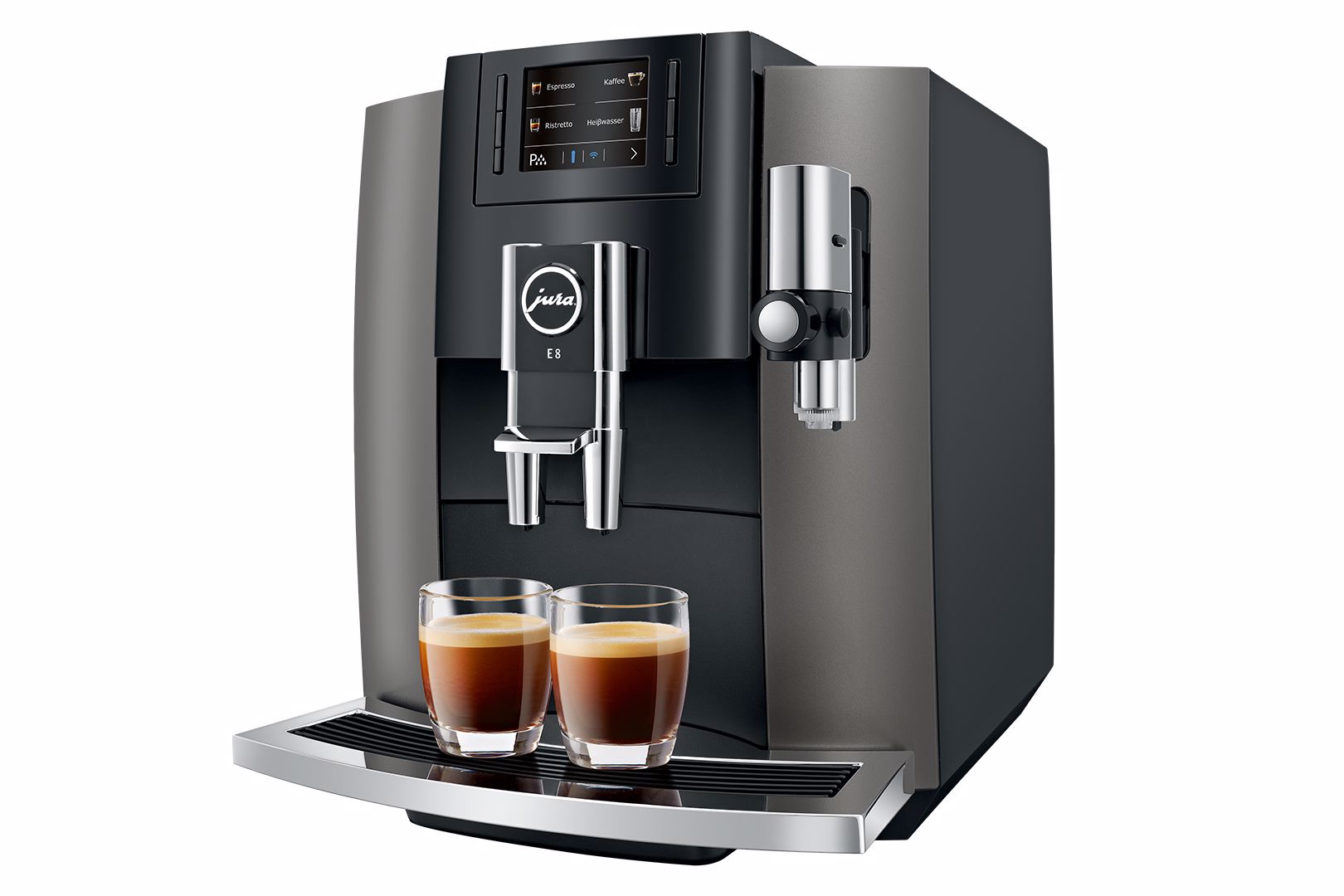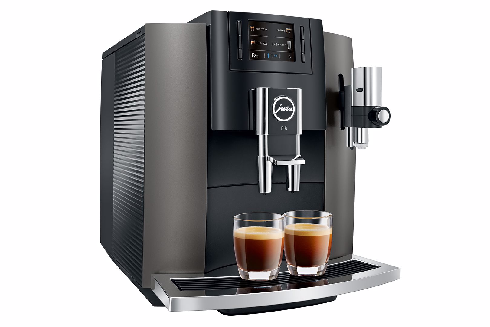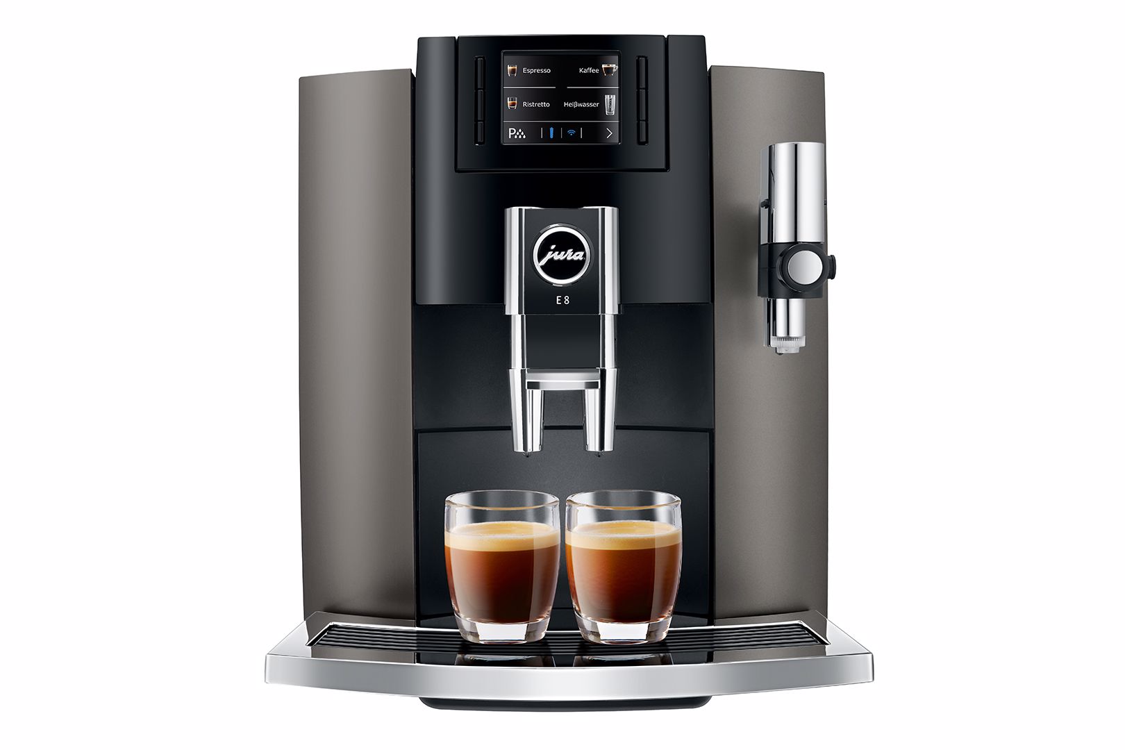 Nejúspěšnější automat od značky JURA byl dále zdokonalován. Celkem dvanáct různých specialit připravíte s modelem E8 jediným stisknutí tlačítka. Novým přírůstkem do sortimentu je espresso macchiato, espresso doppio, káva speciál a horká voda pro zelený čaj připravované jedním stisknutím tlačítka.