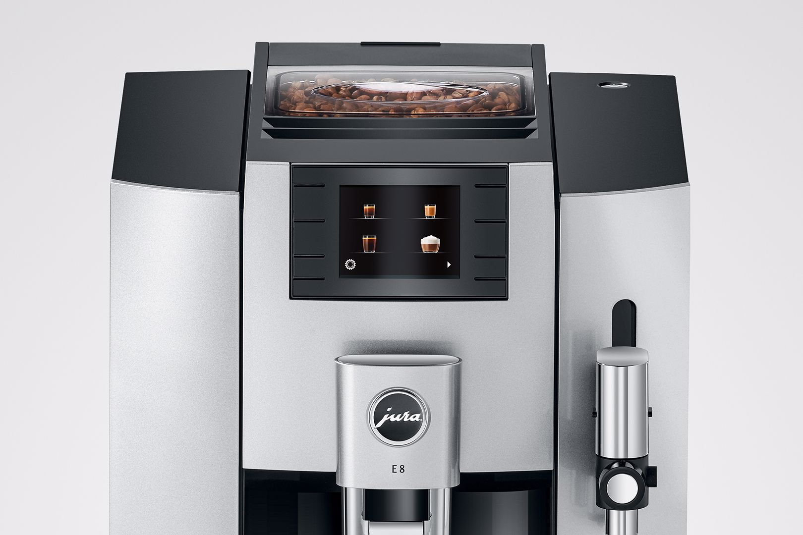 Charakteristický design automatických kávovarů JURA je jasný a výrazný. Vysoce kvalitní materiály a precizní zpracování podtrhují prémiovou kvalitu moderního kávovaru E8. Už jeho tvar je symbolem kvality, funkčnosti a dlouhé životnosti. Detaily jako nádrž na vodu s rýhami nebo vysoce kvalitní, chromovaný podstavec pro šálky dokreslují čistý a harmonický design modelu E8.