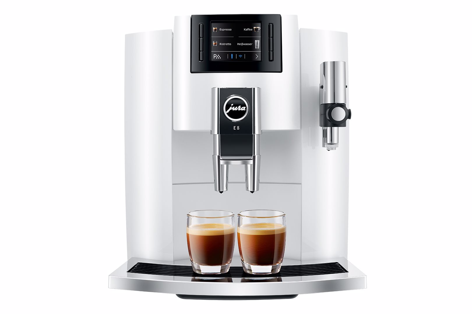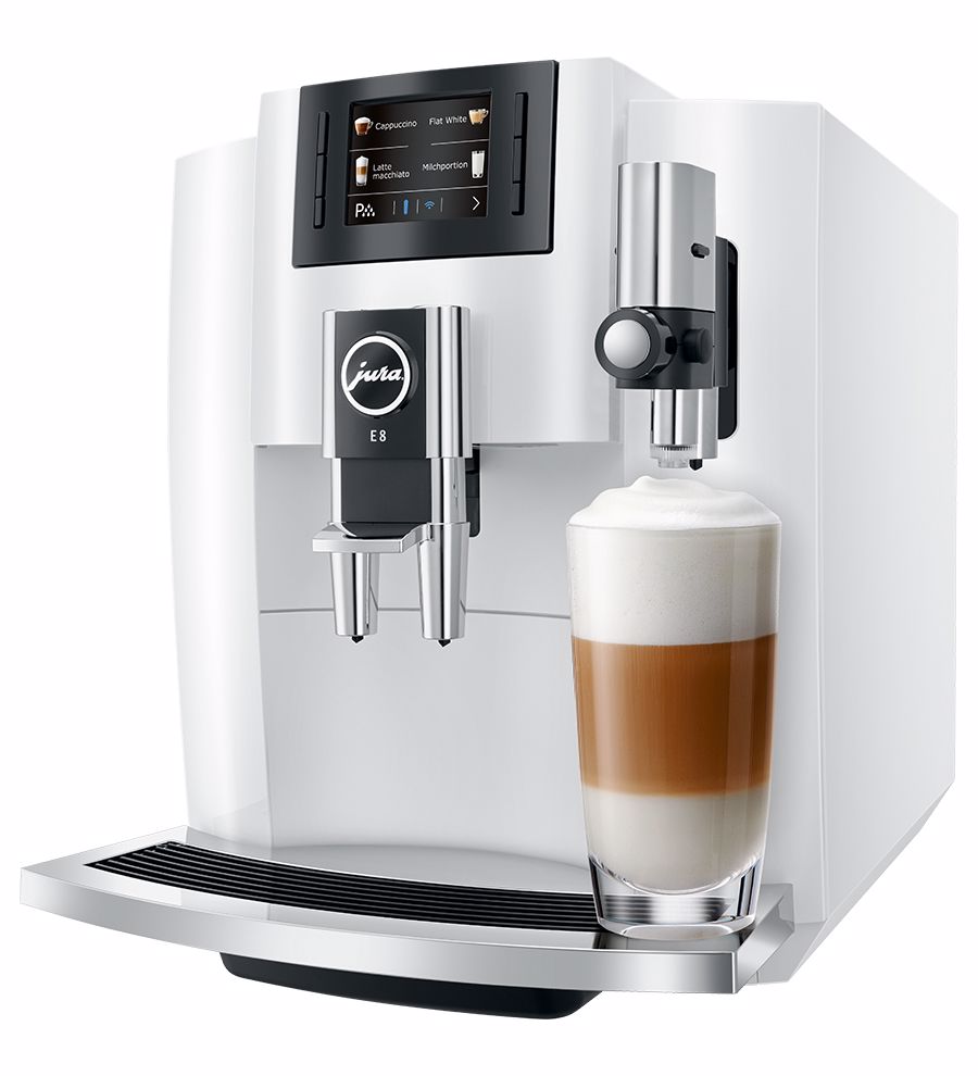 Nejúspěšnější kávovar od značky JURA byl dále zdokonalován. Celkem dvanáct různých specialit připravíte s modelem E8 jediným stisknutím tlačítka. Novým přírůstkem do nabídky nápojů je espresso macchiato, espresso doppio, káva speciál a horká voda pro zelený čaj, vše připravované jediným stisknutím tlačítka.