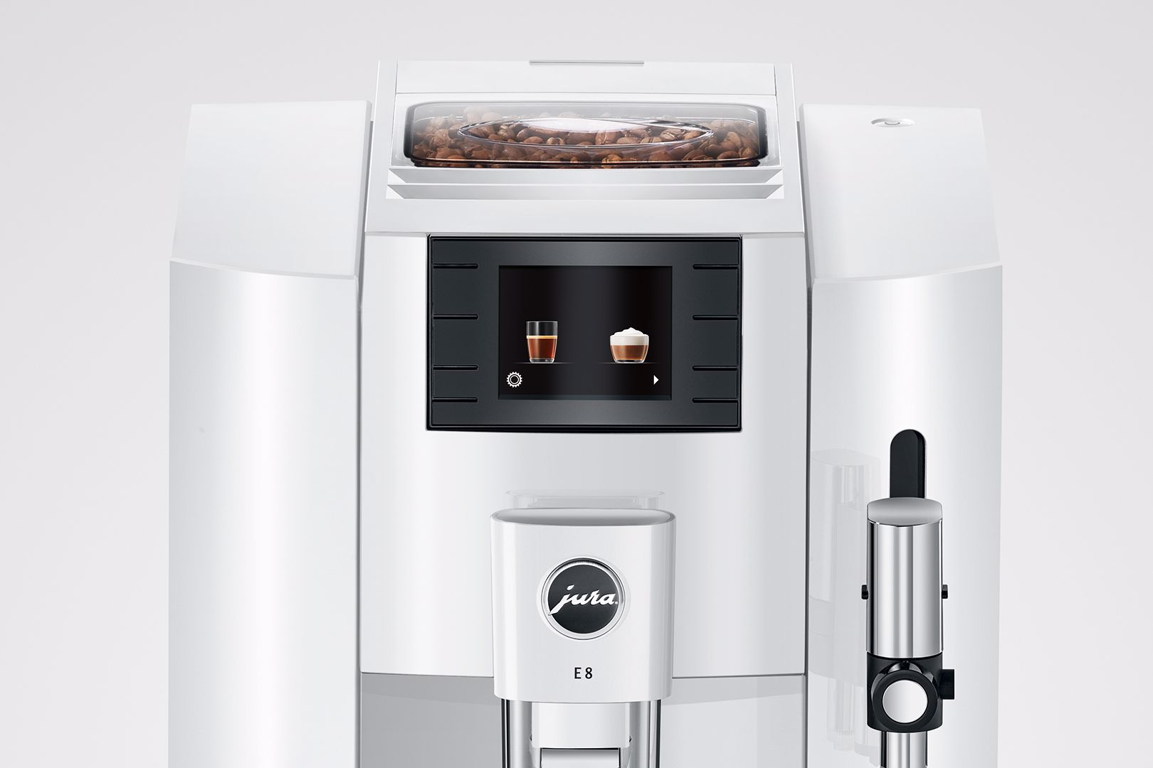 Charakteristický design automatických kávovarů JURA je jasný a výrazný. Vysoce kvalitní materiály a precizní zpracování podtrhují prémiovou kvalitu moderního kávovaru E8. Už jeho tvar je symbolem kvality, funkčnosti a dlouhé životnosti. Detaily jako nádrž na vodu s rýhami nebo vysoce kvalitní, chromovaný podstavec pro šálky dokreslují čistý a harmonický design modelu E8.