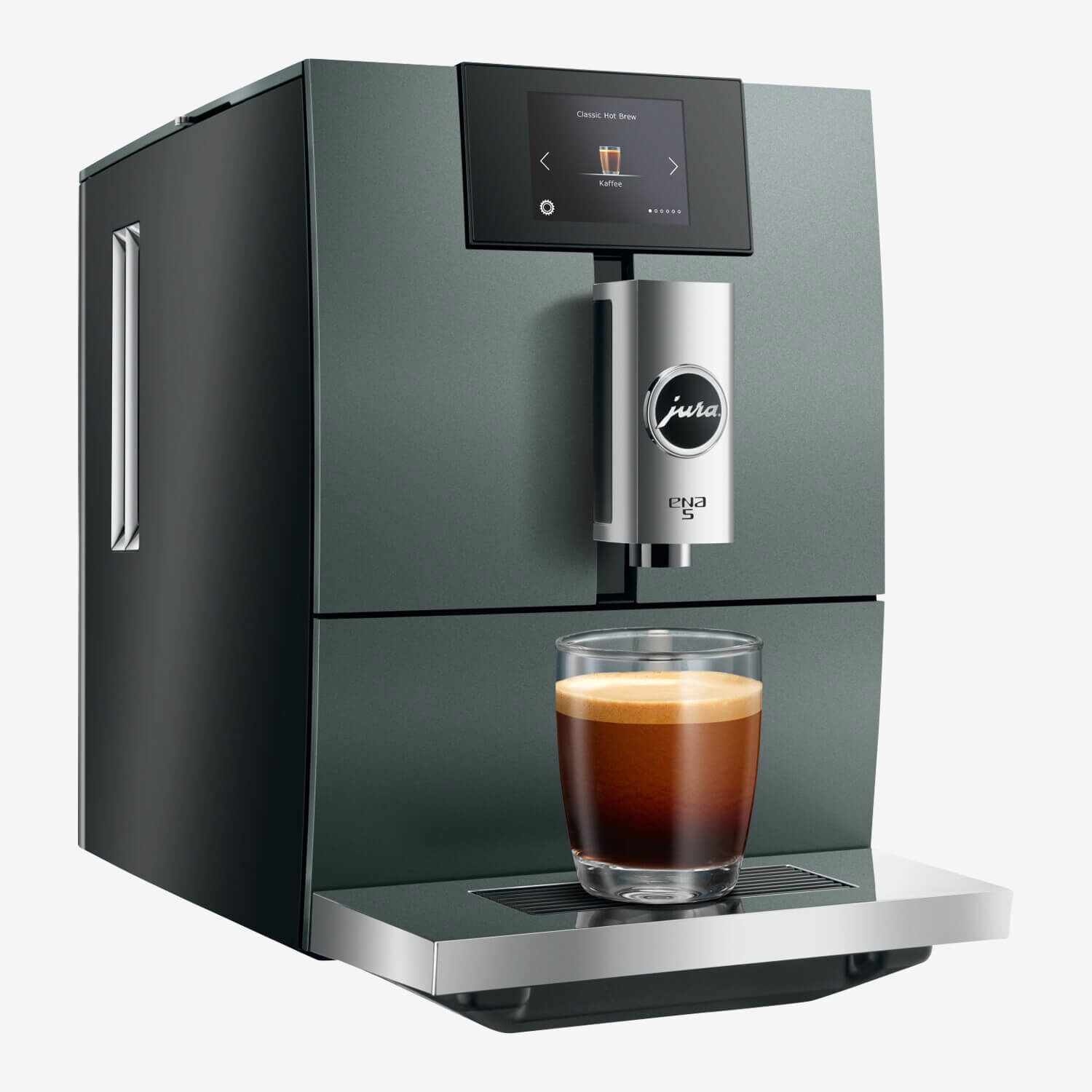Kávovar ENA 5 se vyznačuje vysokým standardem kompaktní třídy v kombinaci s inovativními technologiemi JURA. Prezentuje se jako automatický kávovar pouze na černou kávu, který uspokojí touhu po něčem výjimečném. Dotykový TFT displej ENA 5 zobrazuje tři způsoby přípravy kávy na různých barevných pozadích a nabízí milovníkům kávy jednoduchou vizuální nabídku. Zaoblené designové detaily v kombinaci s přímočarým stylistickým jazykem upoutají Vaši pozornost. Pozornost poutá i nádržka na vodu s diamantovým vzorem a chromovaná výpusť na kávu.