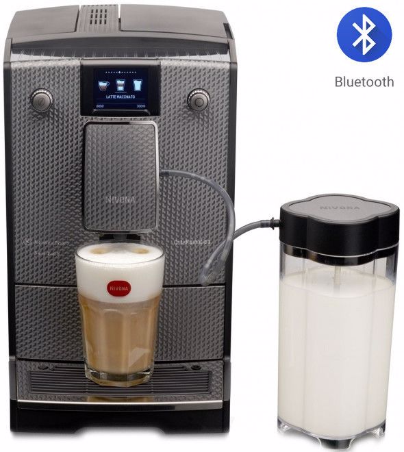 Kávovar je k dispozici v moderním antracitovém provedení s 3D efektem a s chromovými detaily. Sluší mu to v každém moderním interiéru. Model NIVONA NICR 789 je kávovarem s ONE TOUCH ovládáním (vše jedním stiskem), barevným displejem a BLUETOOTH připojením, díky kterému můžete přístroj ovládat pomocí chytrého telefonu nebo tabletu, sledovat statistiky, nebo měnit nastavení nápojů.
